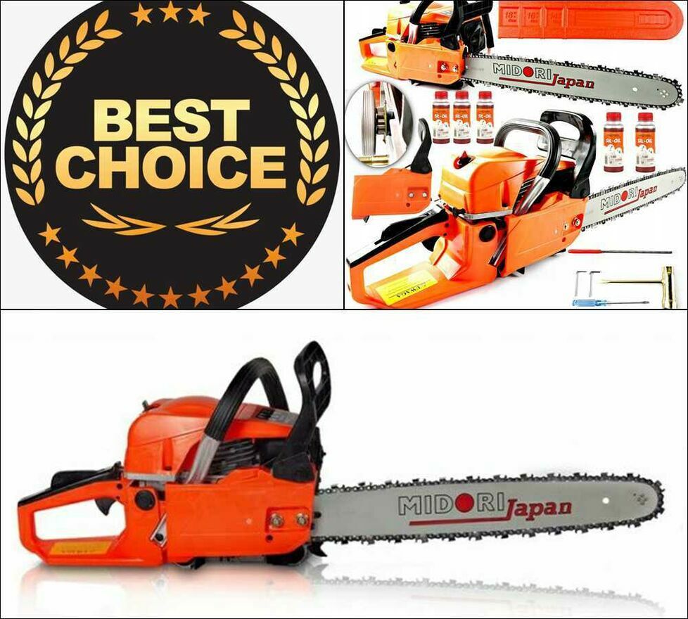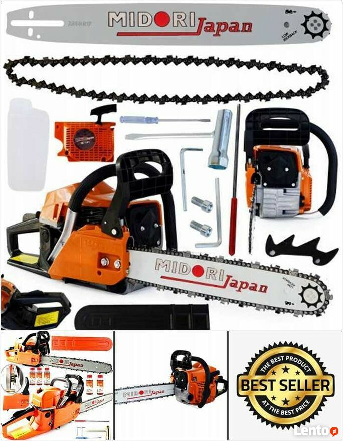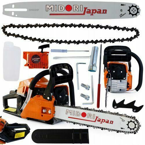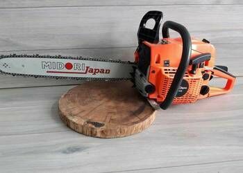 Sprzedam nową pilarkę spalinową firmy Midori Japan o mocy 3,9 KM, oryginalnie zapakowany zestaw z wszystkimi akcesoriami! Towar fabrycznie nowy w oryginalnym opakowaniu. Urządzenie jest wyposażone w mocny silnik, który zapewnia bardzo wysoką wydajność pracy. Antywibracyjny uchwyt oraz odpowiednio wyważona rękojeść gwarantuję bezpieczeństwo i komfort użytkowania. Piła posiada chromowany cylinder oraz wyposażona jest w automatyczne sprzęgło, pompkę smarowania łańcucha oraz pływającą zębatkę. Silnik dwusuwowy chłodzony powietrzem, do którego stosujemy mieszankę w proporcji 1:25. Dodatkowo pilarka wyposażona jest w miękki start. Idealnie nadaje się do cięcia wszelkiego rodzaju drewna i drzewa, zarówno opałowego jak i ogrodowego, oraz do ścinania i obcinania gałęzi.